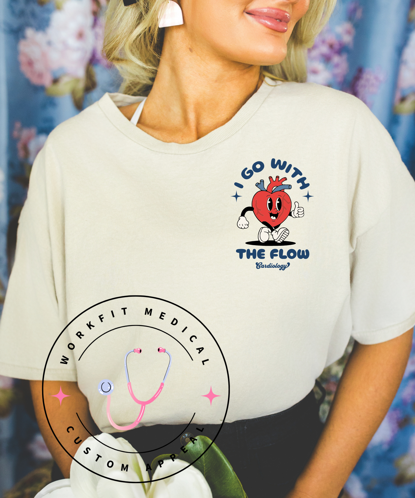 Offered in a unisex Bella Canvas T shirt & Gildan Crewneck. Working in Cardiac Care this design is small & simple.