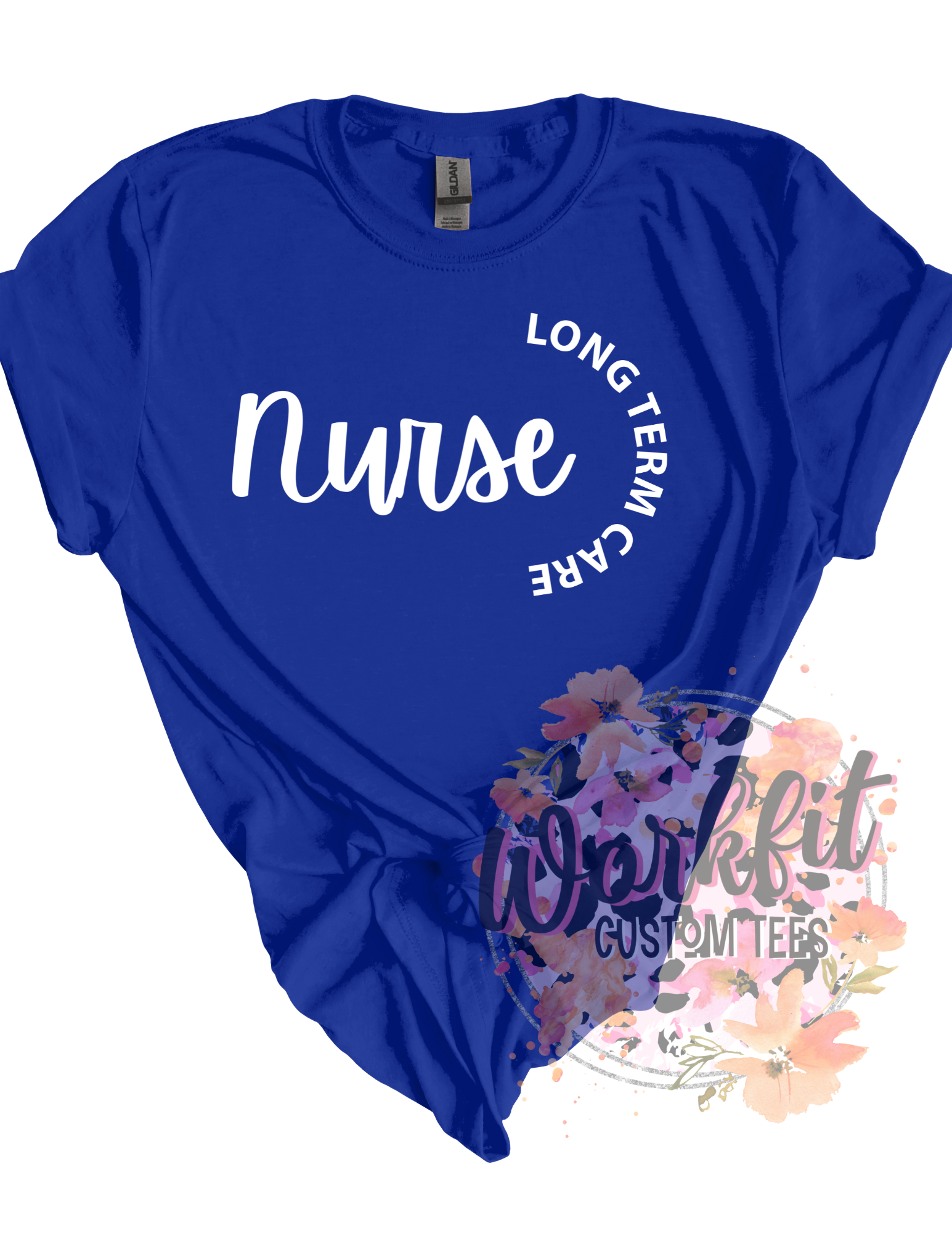 Classis simple design for all my LTC Nurses- Offered on a Soft Gildan Tee with digital film for long lasting wear & care.