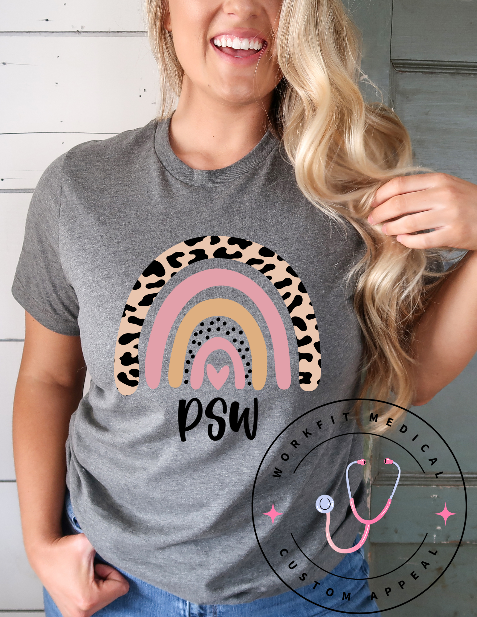 Perfect for the Spring & Summer months of work. These Rainbow PSW tees are custom designed in house and DTF imagery pressed to shirt for long last wear & care. We use Soft Shell Gildan unisex brand tees for these and provided a size chart below