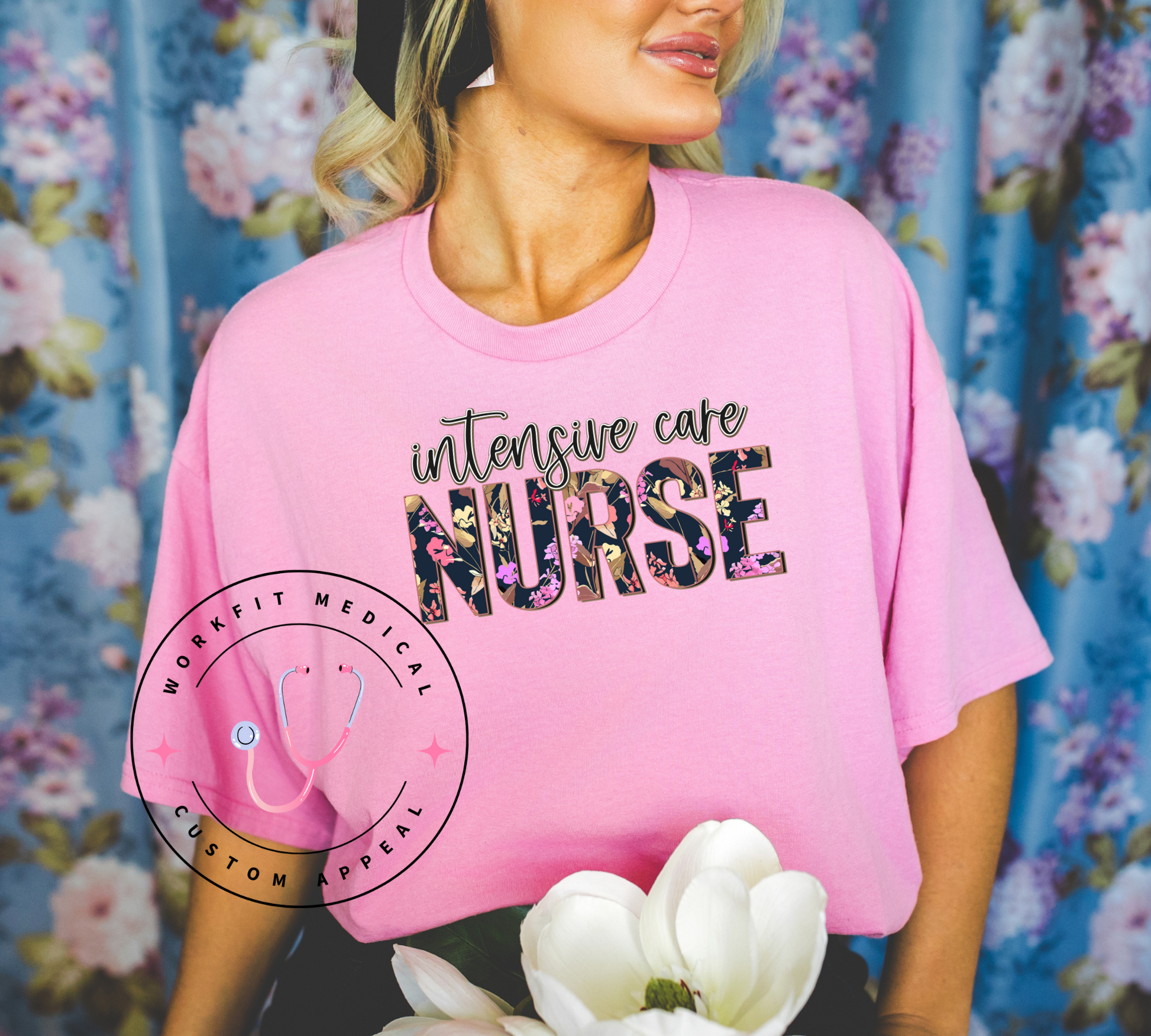 Floral ICU Nurse Crew & Tee